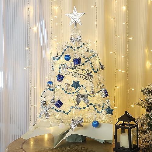 Specification: Juegoal White Mini Christmas Tree, 24 Inch/2 FT Lighted Tabletop Artificial Xmas Pine Tree, Small Spruce Tree Light Up Battery Operated & Timer with 50 LED Lights, for Holiday Winter Home Party Decor