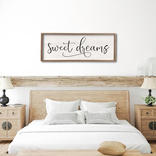 Specification: Sweet Dreams Wall Decor Above Bed Sign 32″ x 12″ Master Bedroom Wooden Antique Framed Large Rustic Farmhouse Guest Room Beautiful Simple Hanging Plaque Over Bed Wall Art (Wood)